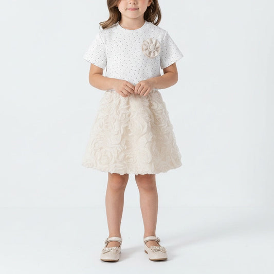 Floral Textured Rosette Top and Skirt Set